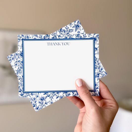 Blue Floral Vignette Thank You Card Set 8ct.